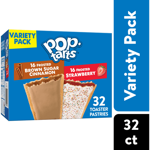 Pop-Tarts Frosted Strawberry and Frosted Brown Sugar Cinnamon toaster pastries are a delicious treat to look forward to any time of day. Jump-start your day with either a sweet, strawberry-flavored filling or blast of gooey, brown sugar cinnamon-flavored filling, both encased in a pastry crust and topped with yummy frosting. A quick and tasty anytime snack for the whole family, Pop-Tarts toaster pastries are an ideal companion for lunchboxes, after-school snacks, and busy, on-the-go moments; Not just for mornings, the versatile deliciousness of Pop-Tarts fits into your lifestyle just about anywhere there's time for a snack. Store them in your desk drawer for a pick-me-up at the office or keep them in your pantry for an after-dinner treat. Just pop them in your toaster for a crisp, warm crust, heat them in the microwave, or enjoy them straight out of the foil with a glass of ice-cold milk.