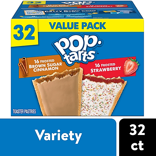 Pop-Tarts toaster pastries are the perfect sweet treat at breakfast, for lunch snack time, or dessert. Featuring a variety of sweet flavored fillings in a frosted soft pastry crust, this ready to eat treat is perfect for snack time for kids and adults on the go. Pack your choice of Pop-Tarts Frosted Strawberry and Frosted Brown Sugar Cinnamon in lunchboxes or backpacks when it's time for school snacking, or stock the office pantry with this individually wrapped grab and go adult snack time choice. Pop them in the toaster and pair with milk, create your own ice cream sandwiches, or incorporate into your favorite dessert recipe for a sweet treat. These irresistible snack time options for kids and adults provide a good source of three B vitamins. Stock your pantry with these shelf stable snack alternatives and enjoy ready to eat treats anytime. A flavor for everyone, including fan-favorite flavors, like Frosted Hot Fudge Sundae or Frosted Blueberry.