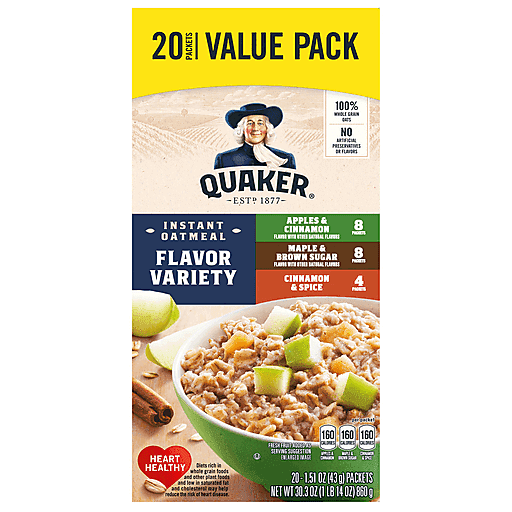 Crave a little variety now and then? So do we. That's why we offer Quaker Instant Oatmeal Flavor Variety Pack featuring Maple & Brown Sugar, Apples & Cinnamon and Cinnamon & Spice flavors. With so much delicious variety, the only problem is deciding which one you'll have.